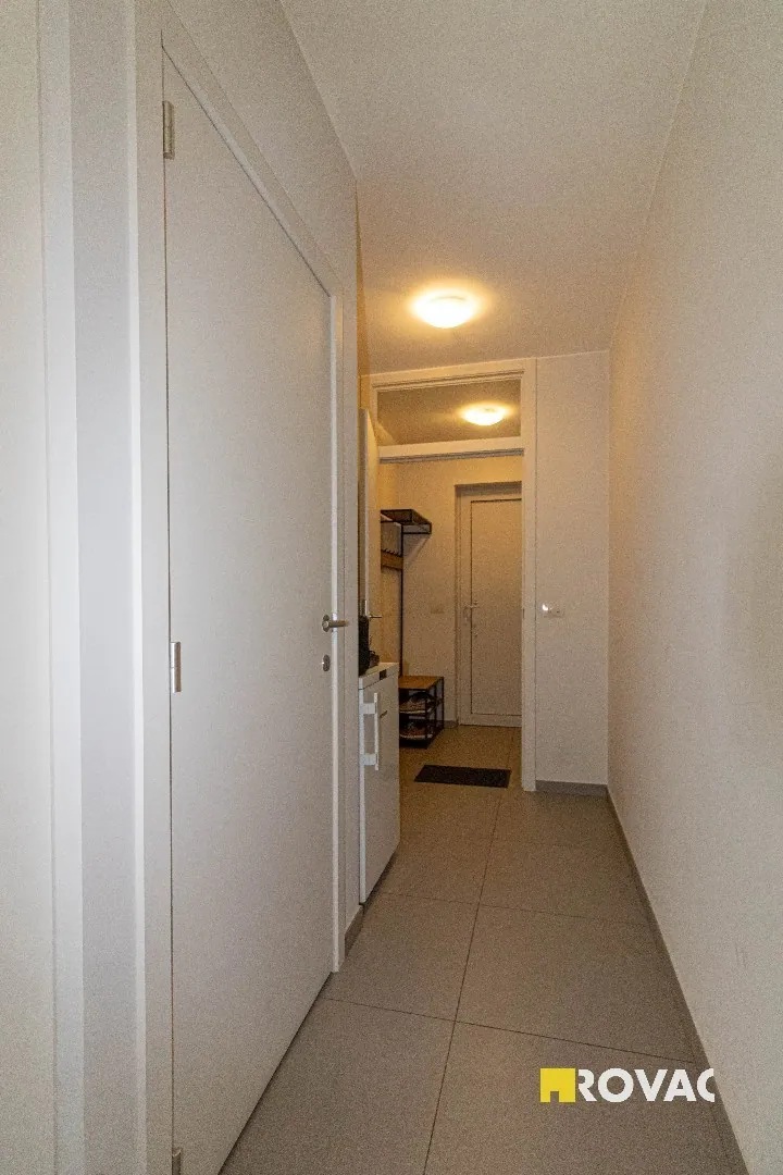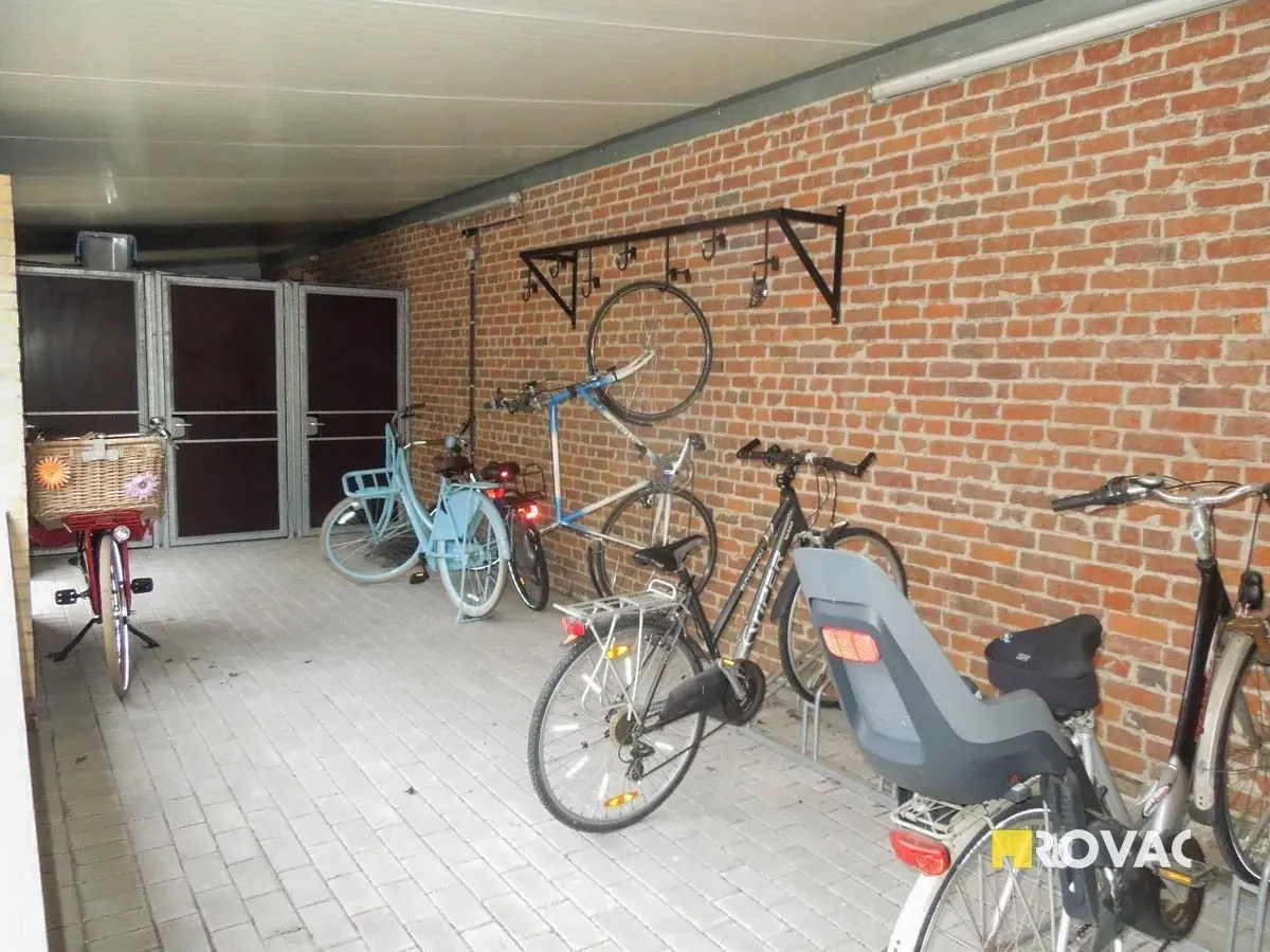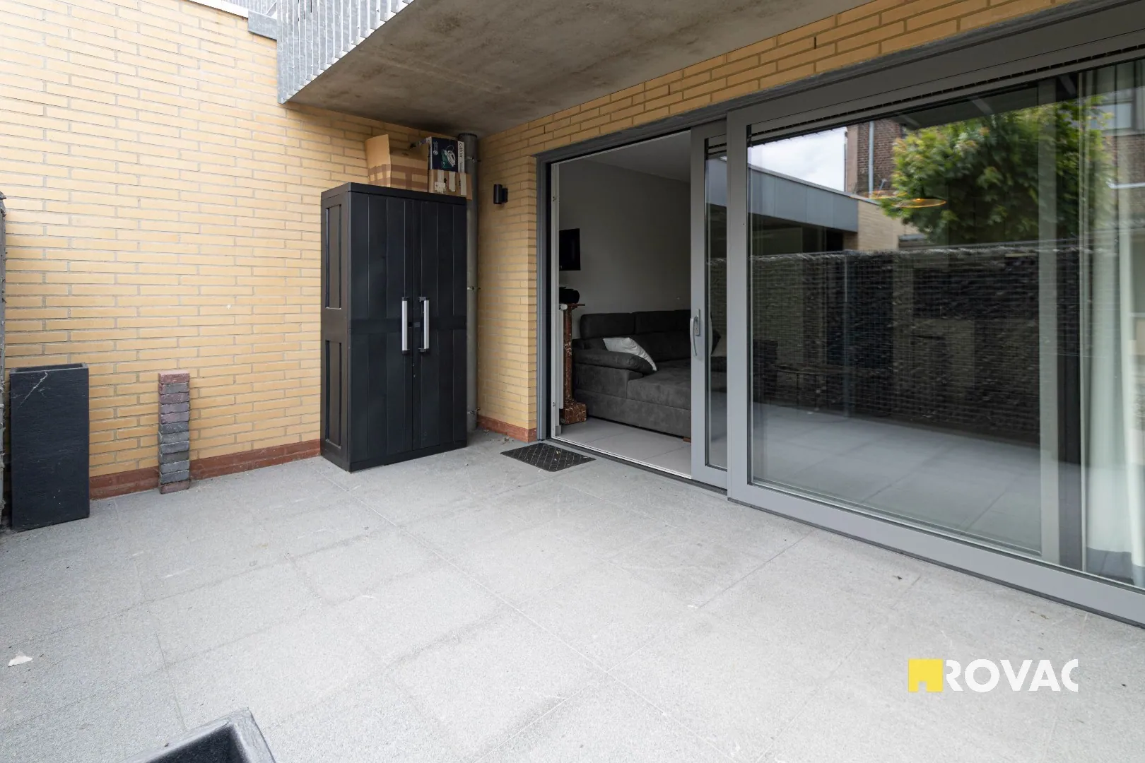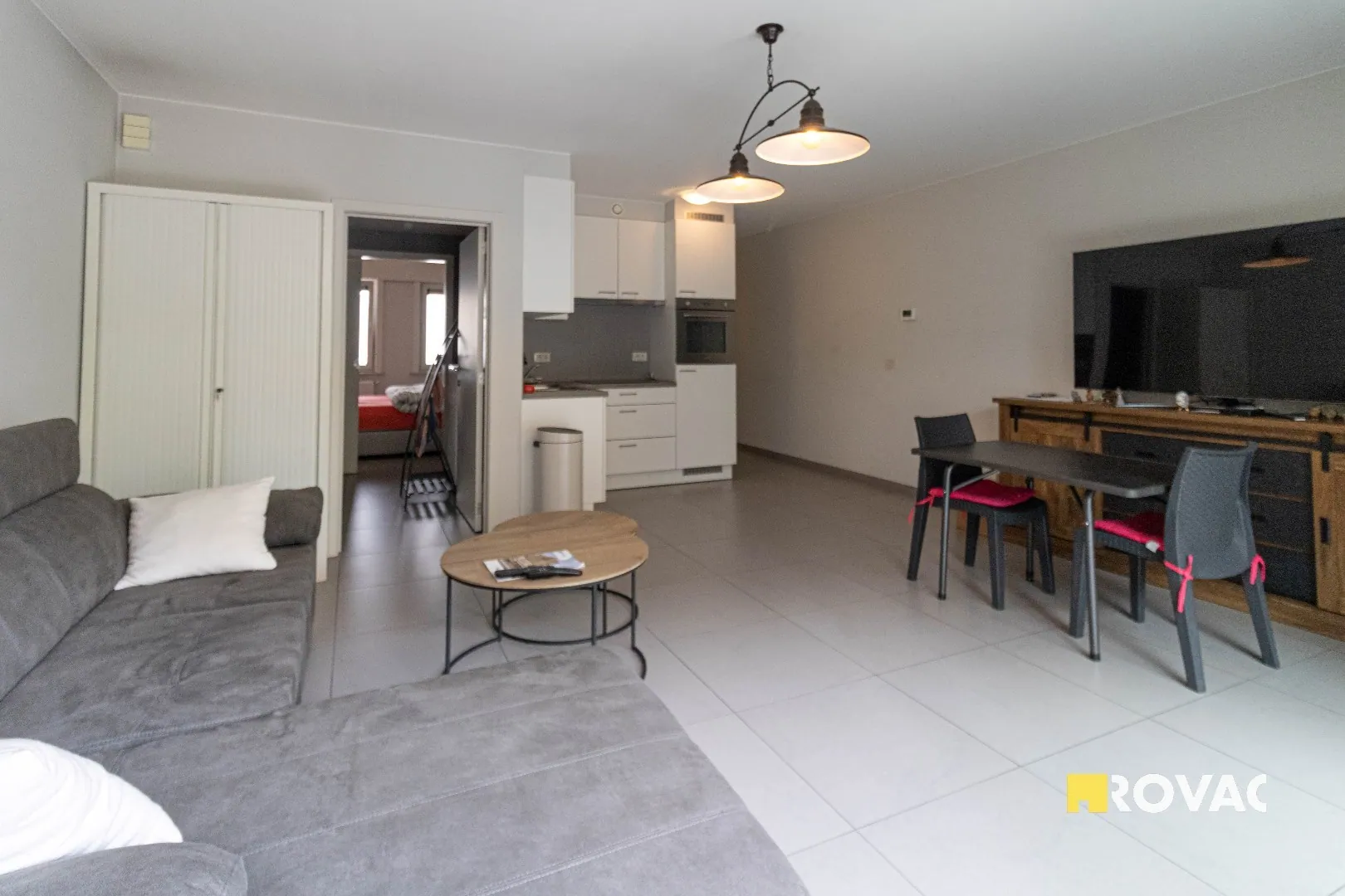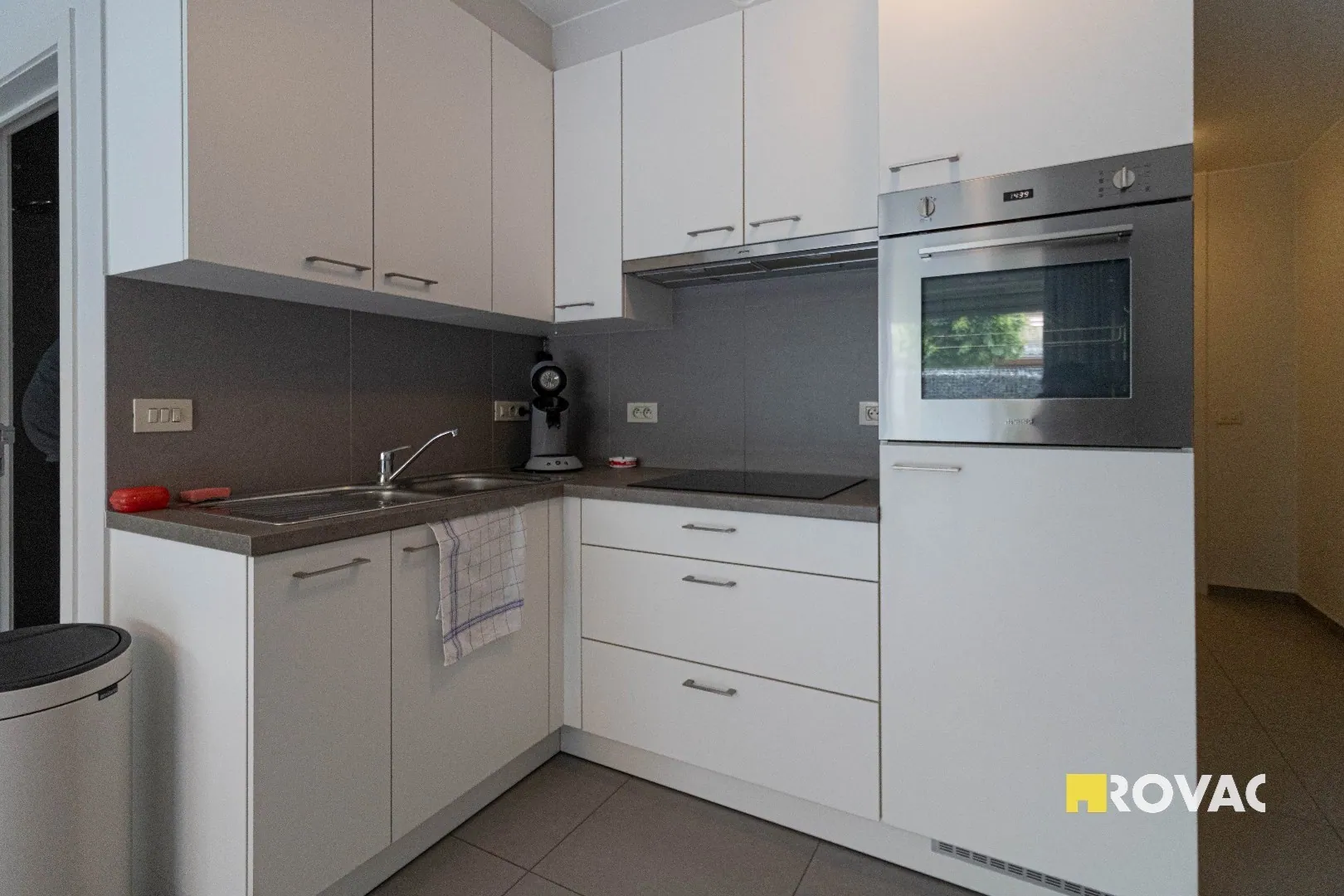 Centraal gelegen en gezellig appartement op het gelijkvloers - 62 m² - bestaande uit inkom, leefruimte met zicht op zuidgericht terras, open ingerichte keuken, wasplaats-berging, badkamer met inloopdouche, toilet en lavabomeubel, 1 ruime slaapkamer voorzien van rolluiken, zuidgericht terras met uitweg achteraan, private parking in garage, private berging, algemene fietsenberging, aangelegd binnenplein. Verwarming : CV op aardgas. Appartement is vrij vanaf 01/07/2026. Voorschot gemeenschappelijke lasten : + € 20 / maand. Ref. : 9444.