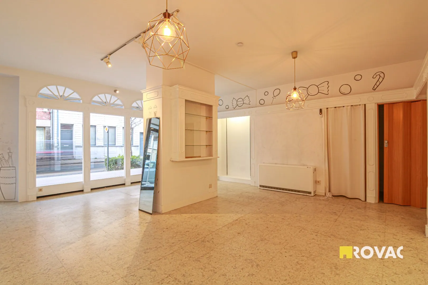 Goed gelegen commerciële ruimte (ong. 100 m²) met ruime etalage! Deze ruimte kan gehuurd worden als handelspand, kantoor- of praktijkruimte. De ruimte is voorzien van een apart toilet met lavabo en een kleine berging. Elektrische accumulatie aanwezig. Voorschot privaat verbruik water en elektriciteit + onroerende voorheffing + € 200 / maand. Ref. : 9397.