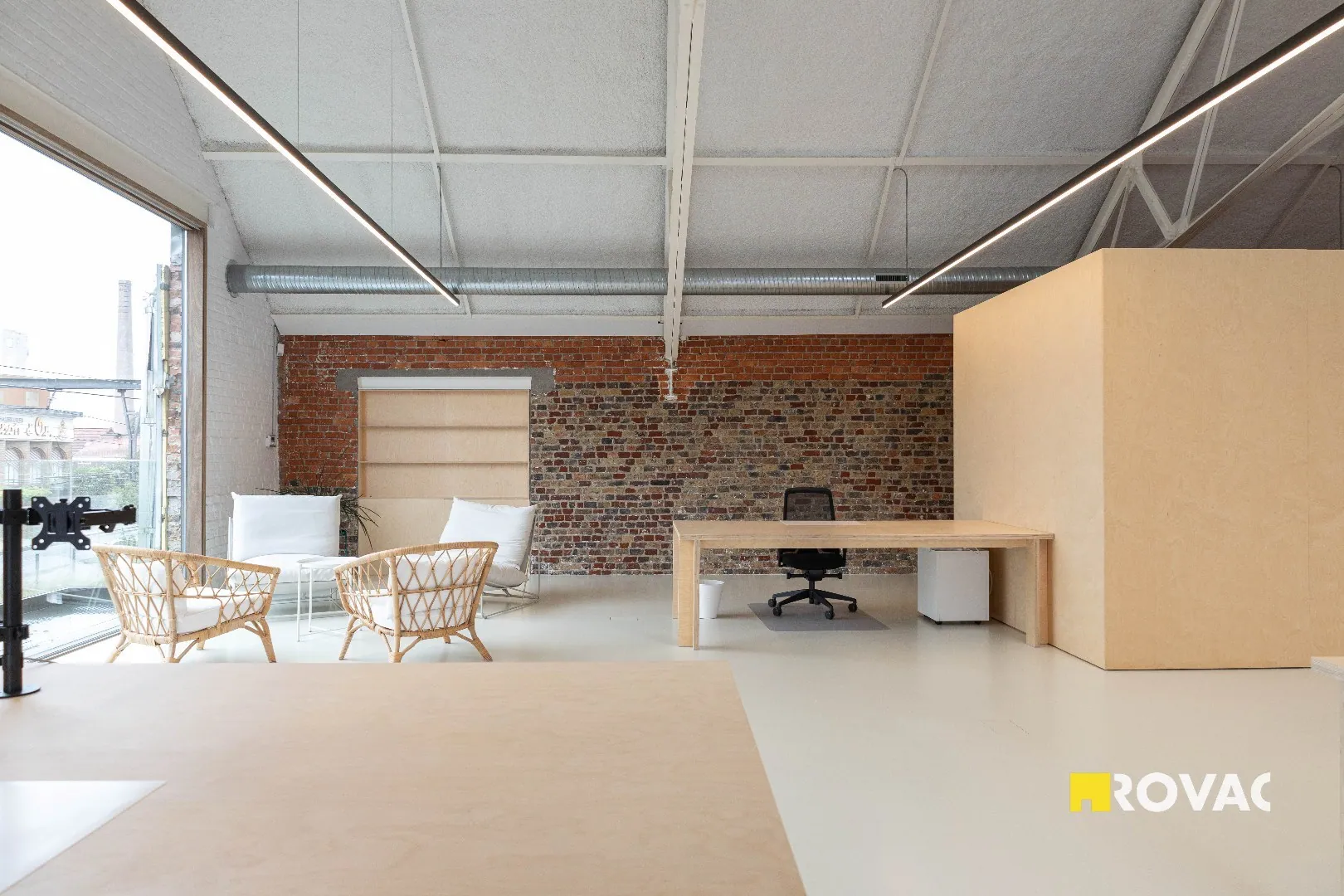 • 3 kantoorruimtes (140 m² – 140 m² – 160 m²), afzonderlijk of samen te huur