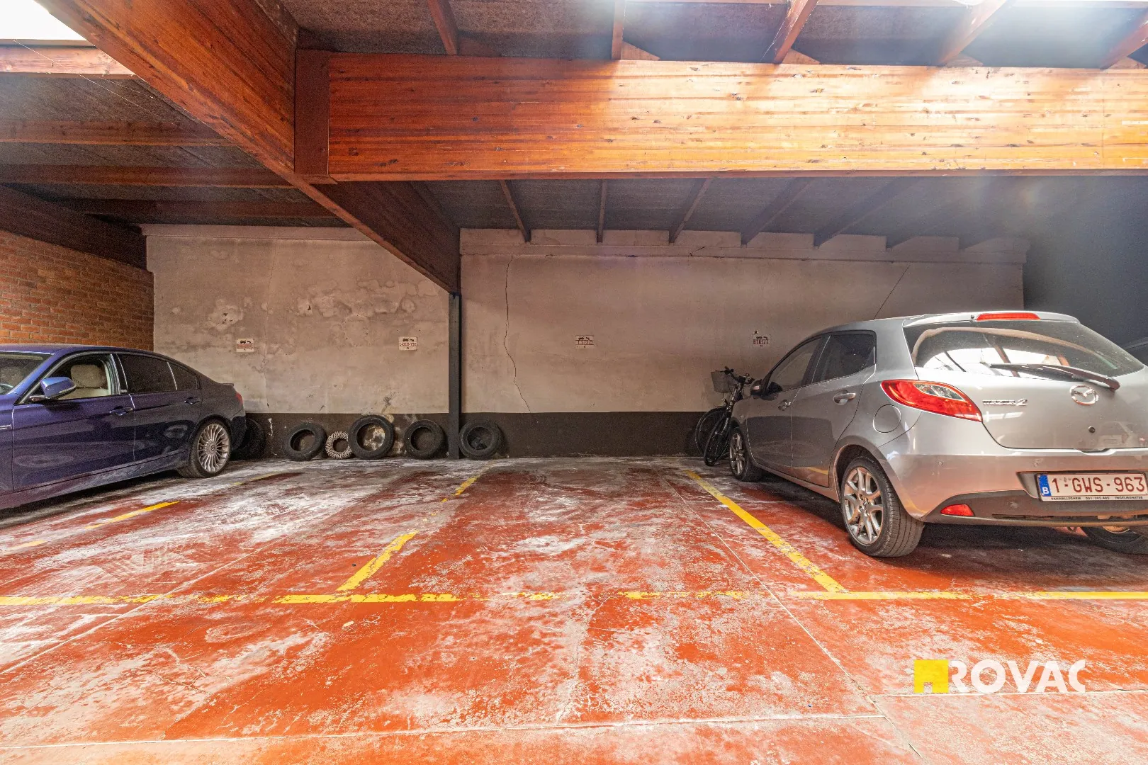 Op het gelijkvloers is er een privatieve autostandplaats en een eigen berging inbegrepen. Daarnaast is er een gemeenschappelijke fietsenberging beschikbaar voor de bewoners.