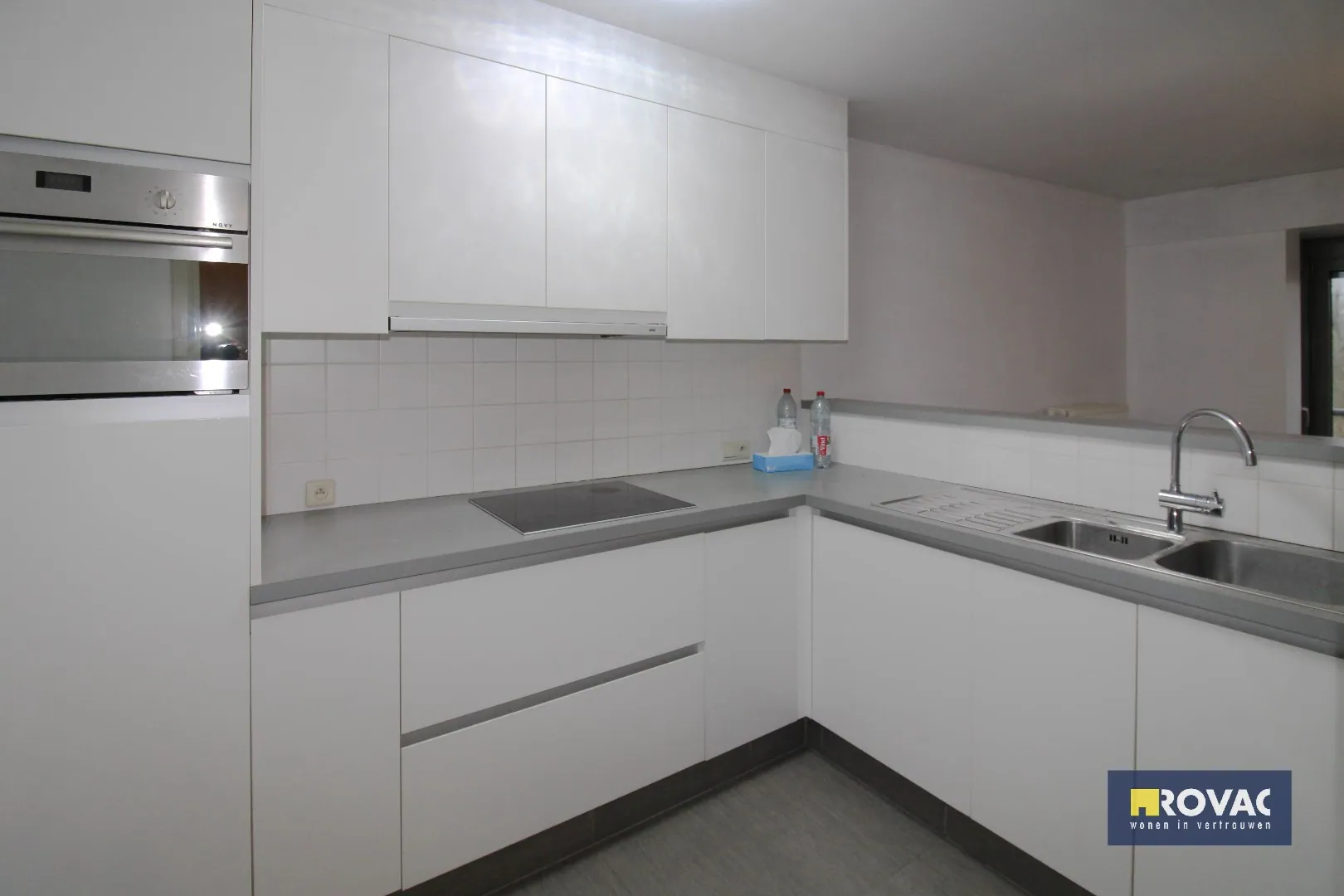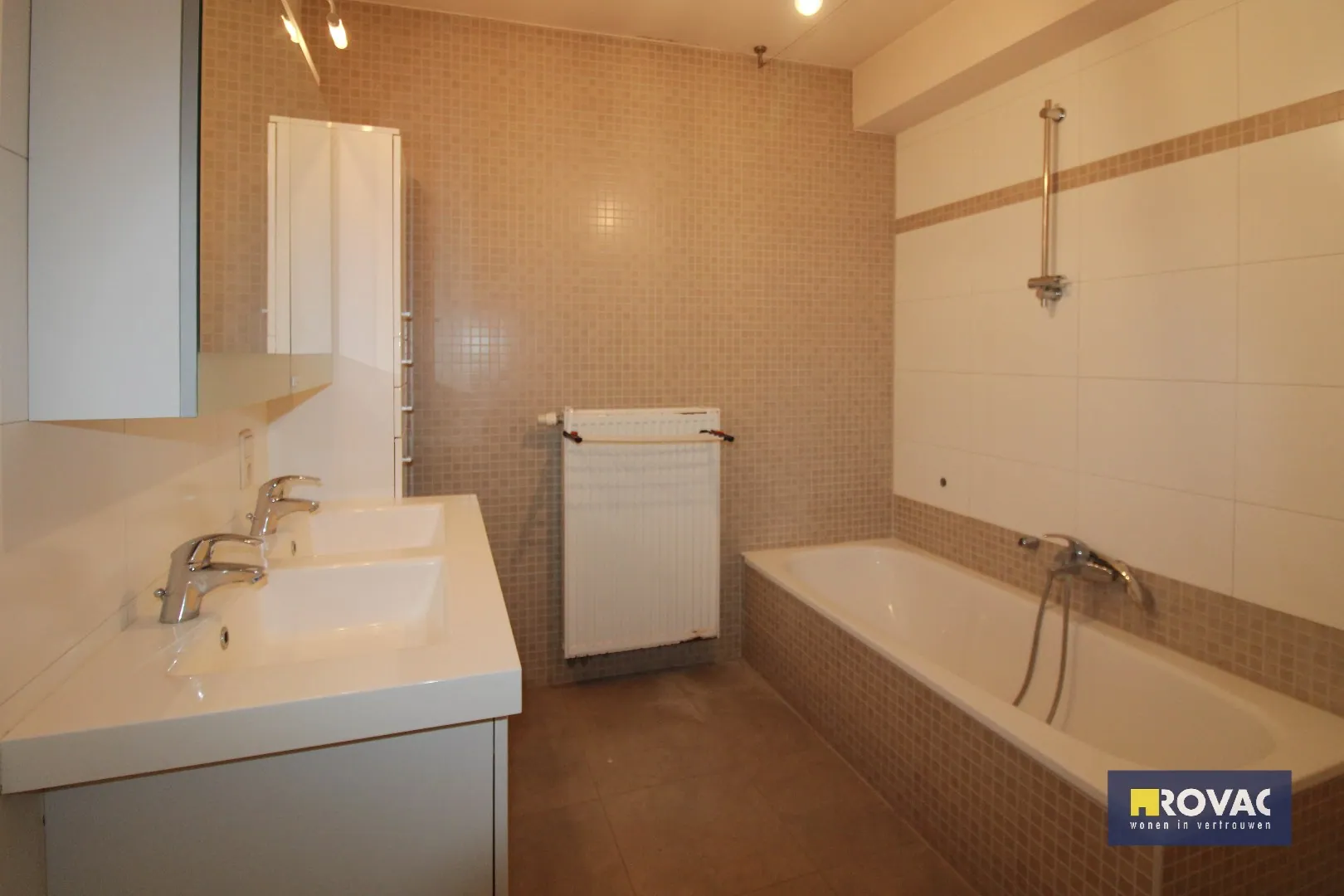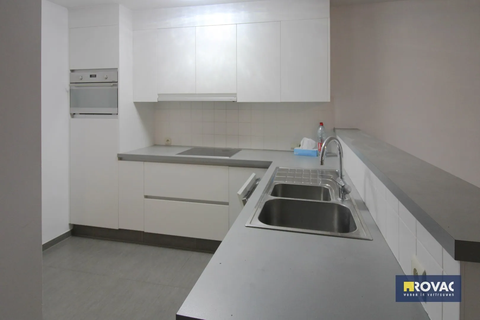In het appartement bevindt zich een inkom met gastentoilet, lichtrijke leefruimte met open keuken, 2 ruime slaapkamers, terras achteraan, een badkamer met dubbel lavabomeubel en ligbad/douche en een berging-CV. Het appartement is zeer geschikt voor eigen bewoning of als voor investering. Verwarming : CV op aardgas. Ref. : 7808.